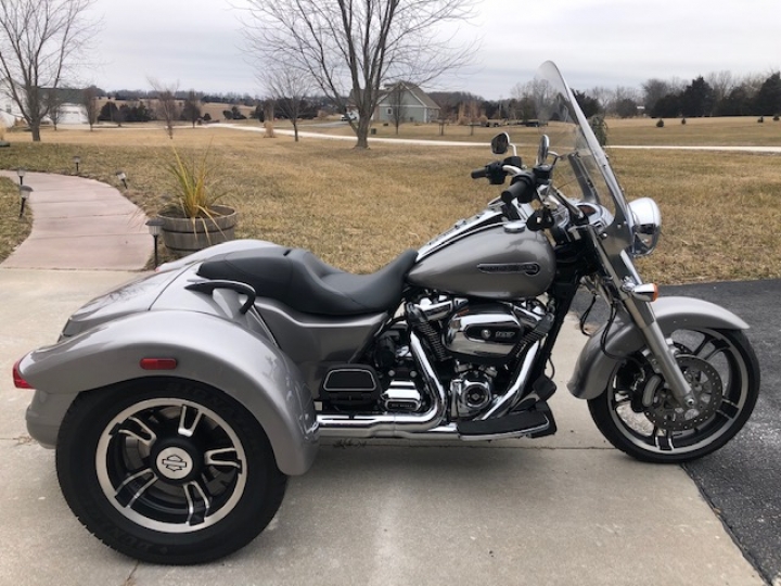 The NEW MILWAUKEE-8 107” engine with a 6 speed Transmission with Hydraulic assist slipper clutch provide the punch and the 19” Enforcer front wheel with a steering damper provide the easy handling. This FreeWheeler has Cruise control, ABS Linked brakes, Parking Brake, HD Detachable windshield, Reverse with handlebar control and the HD Smart Security System with 2 Fobs & 2 keys.! The Large locking trunk will store you travelling gear safe and dry.